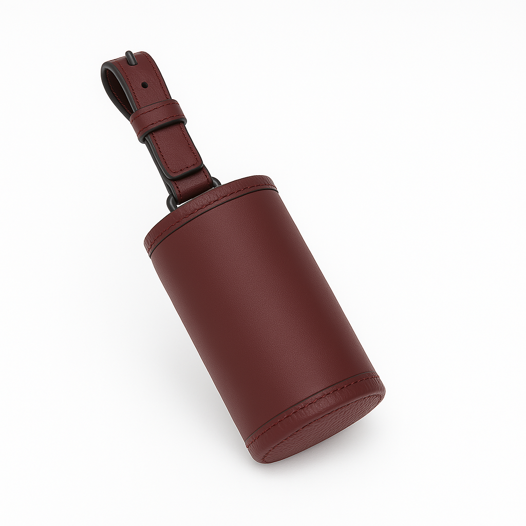 Portabolsas para perro en un elegante tono burgundy, confeccionado en cuero italiano de tacto excepcionalmente suave.
