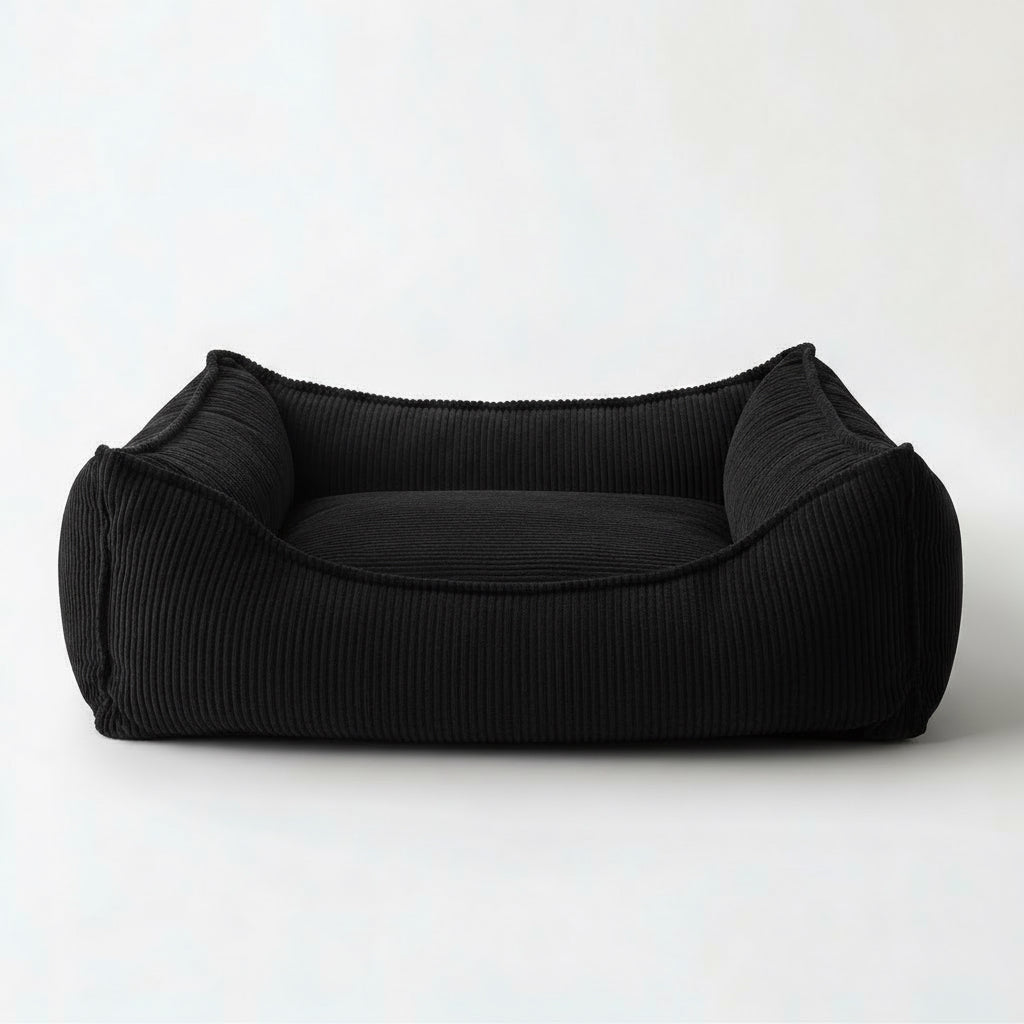 Cama para perro en un elegante tono negro, diseñada para integrarse en hogares donde cada detalle importa destacando por su diseño, calidad y confort.