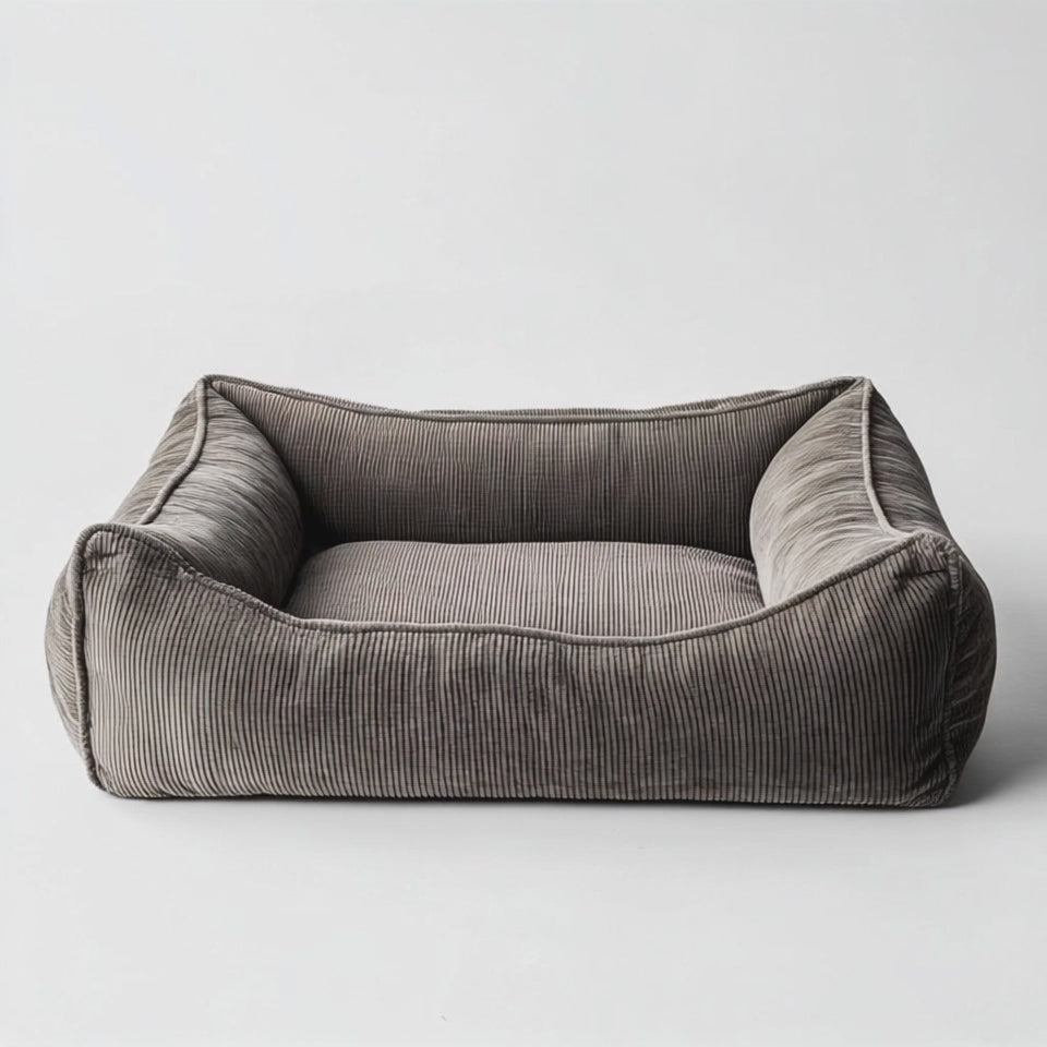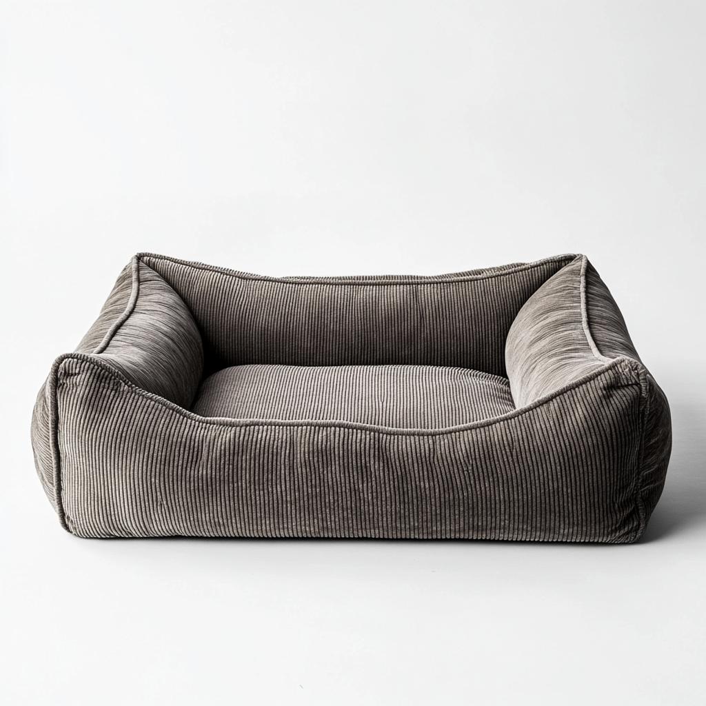 Cama para perro en un elegante tono taupe, diseñada para integrarse en hogares donde cada detalle importa destacando por su diseño, calidad y confort.