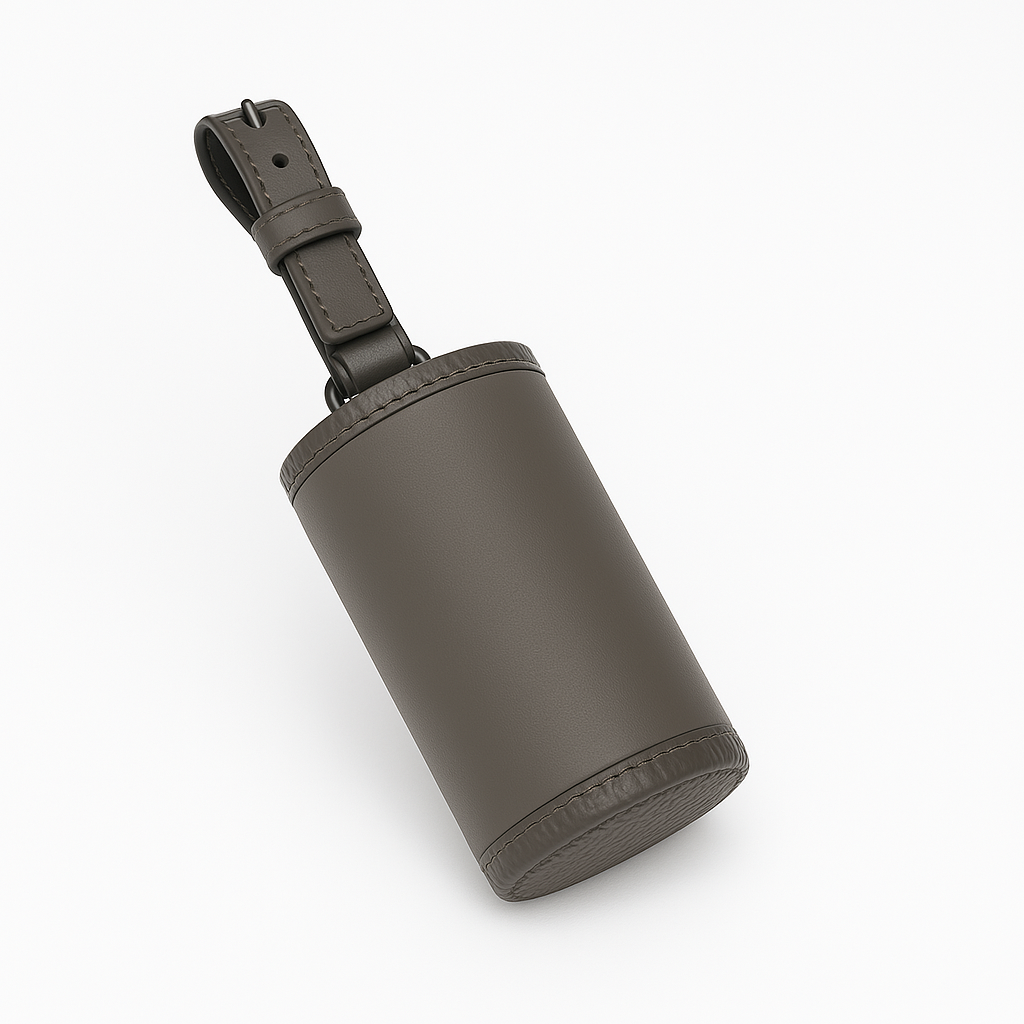 Portabolsas para perro en un elegante tono taupe, confeccionado en cuero italiano de tacto excepcionalmente suave.